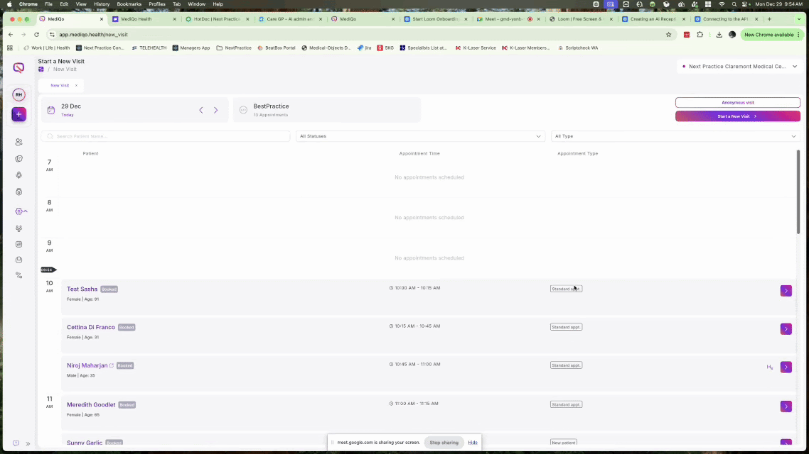 Option A: The Appointment Book Search * Click the Start a new visit button in the top right corner of the screen.