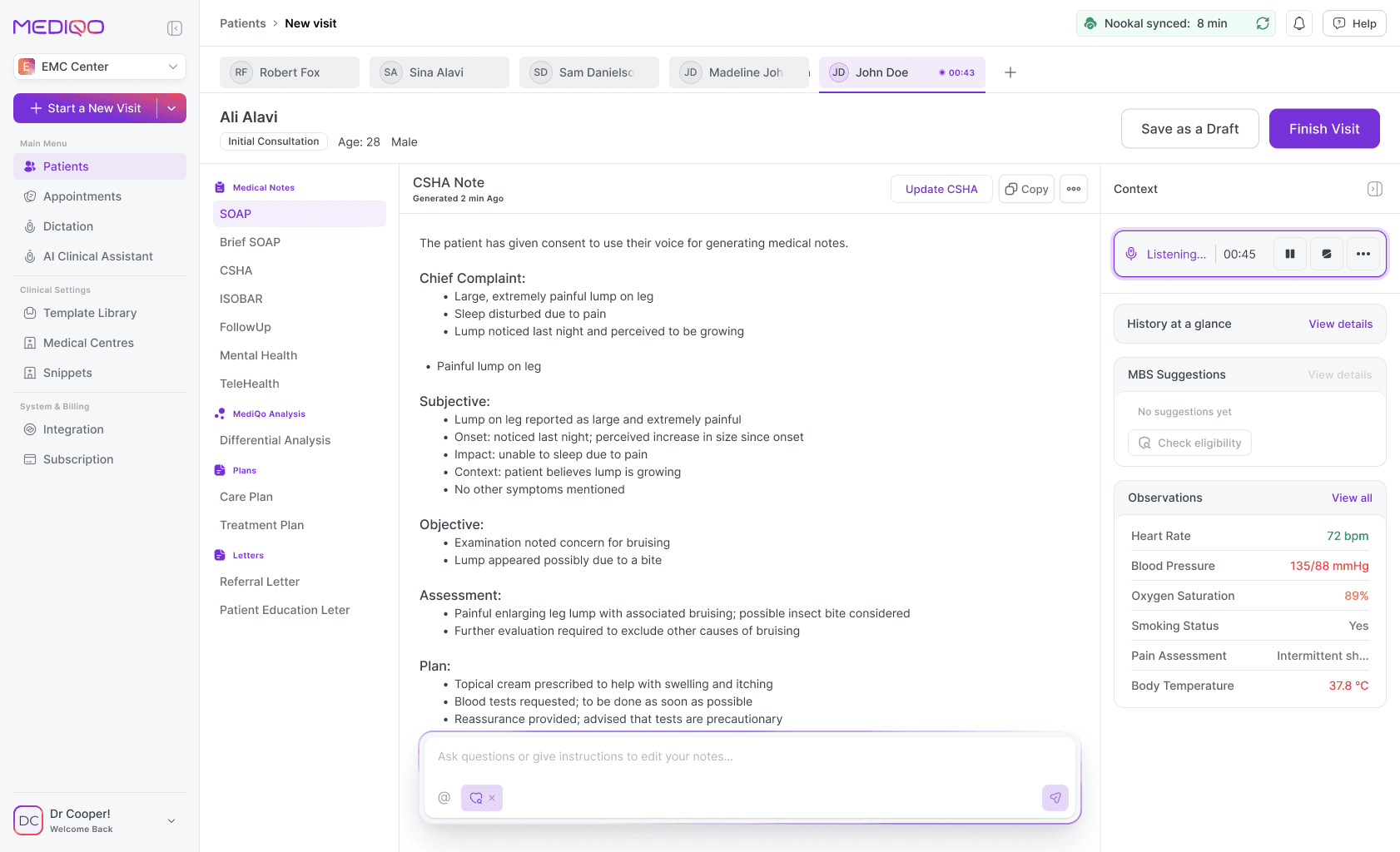 Capture structured, high-quality visit notes using real-time dictation and multiple documentation models.Customise templates for different specialities, generate referral and education letters instantly, all while reducing admin time.