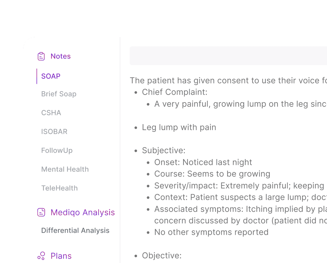 MediQo’s AI-powered medical documentation creates high-quality clinical notes instantly, helping clinicians stay focused on patient care while eliminating hours of manual typing. With real-time drafting, intelligent structuring, and deep integration with your PMS, MediQo transforms documentation from a chore into a seamless part of your workflow.