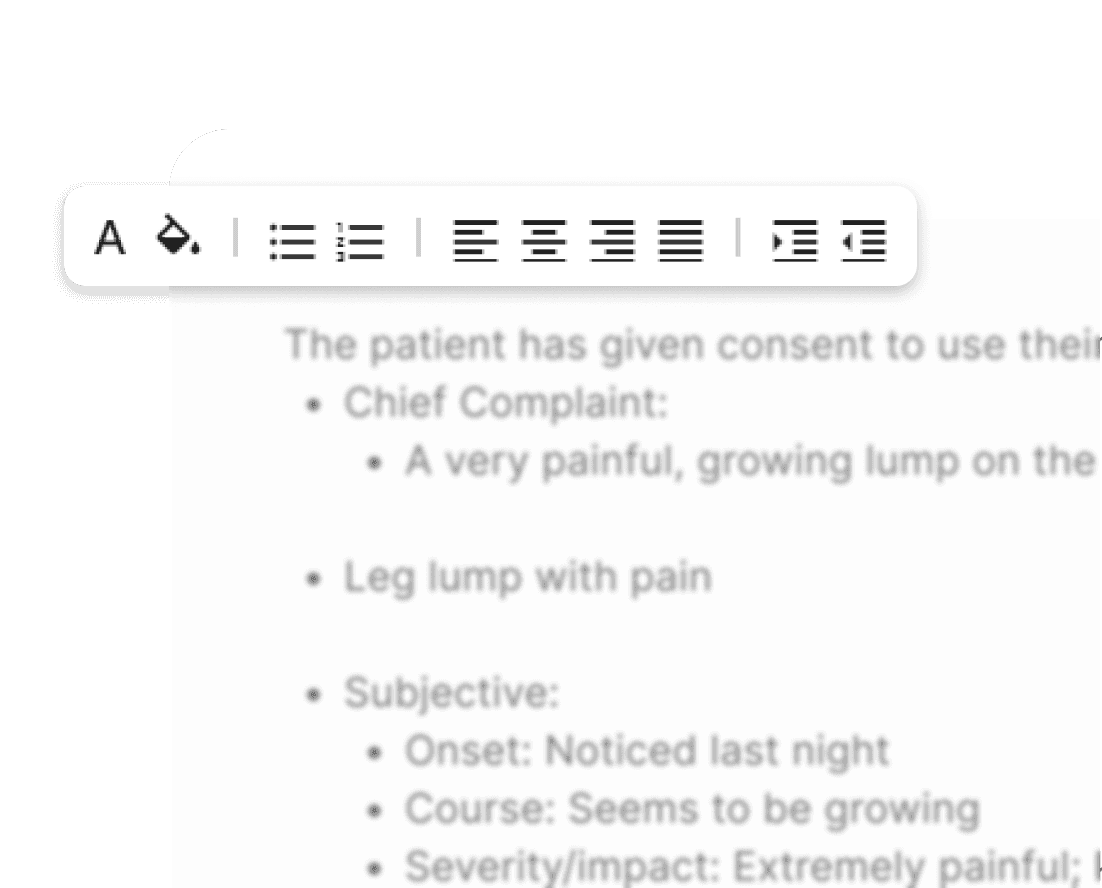 Capture structured, high-quality medical notes instantly with real-time dictation and multiple documentation models, including referrals, patient education letters, etc — reducing admin and freeing up clinician time. Customise note templates and styles for different use cases.