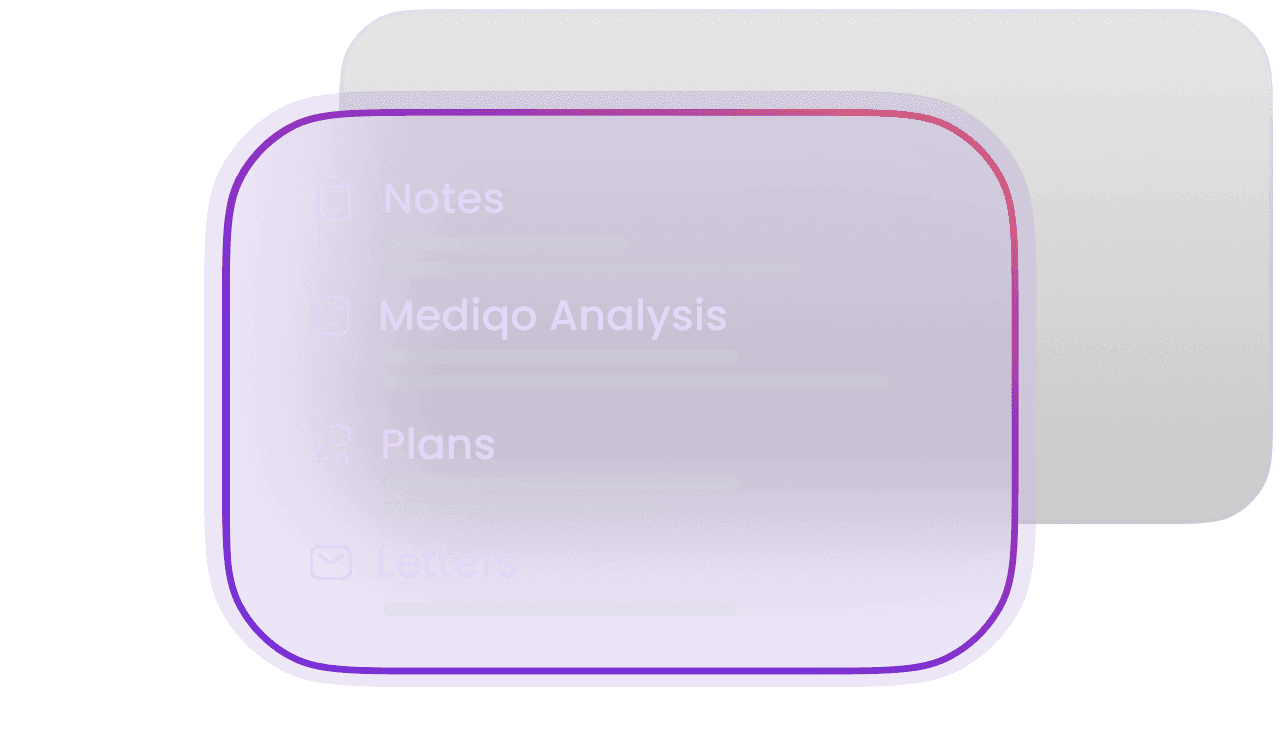 Quickly access a patient’s full clinical story without digging through fragmented records. MediQo pulls together past visits, diagnoses, medications, test results, and care plans into one clear view.