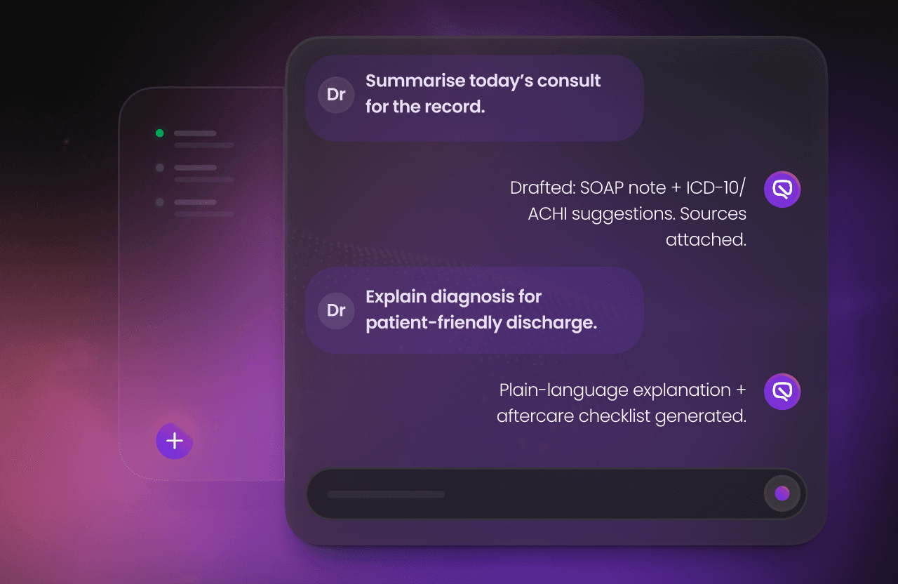Get intelligent, context-aware prompts during consultations to support documentation completeness, risk identification, and structured clinical reasoning.